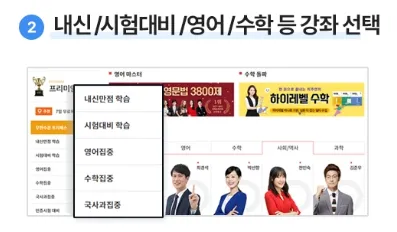 - 내신만점 학습/시험대비 학습/ 영어집중/수학집중/국사과집중에서 원하는 강좌 선택