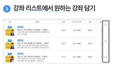 - 강좌 리스트가 나타나면 수강하길 원하는 강좌 담기