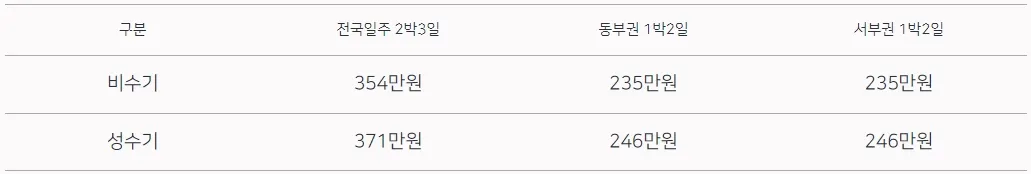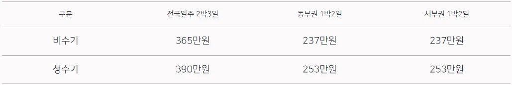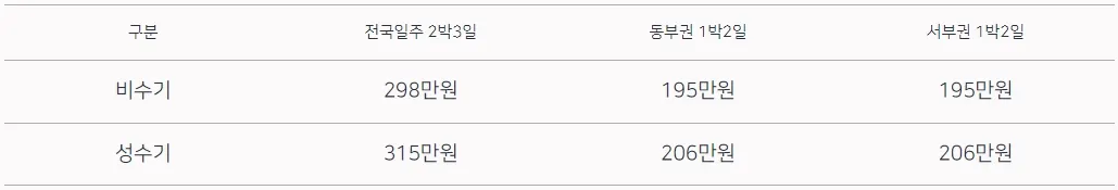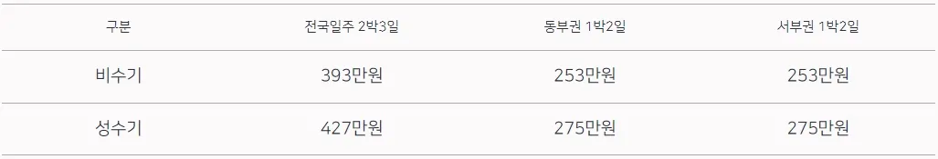 ※ 해랑열차 전국일주 가격표