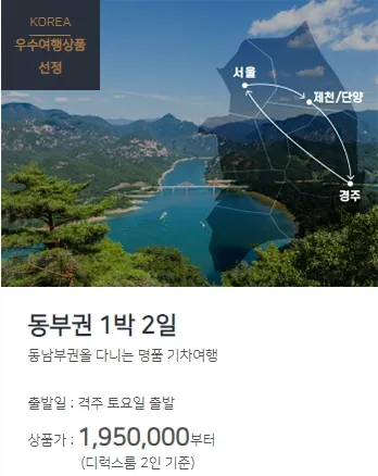 투어코스는 서울 ➡ 제천 ➡ 단양 ➡ 경주 ➡ 서울로 이어집니다.